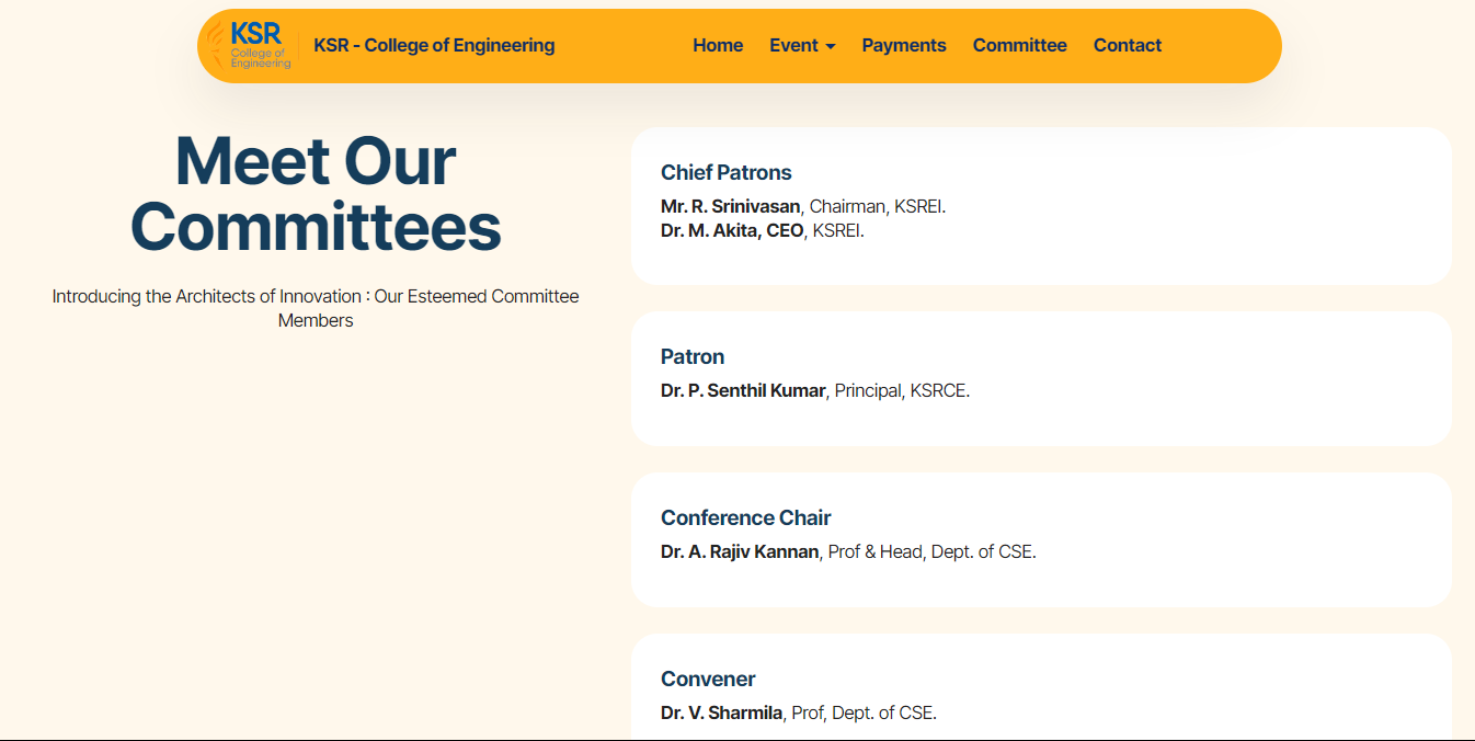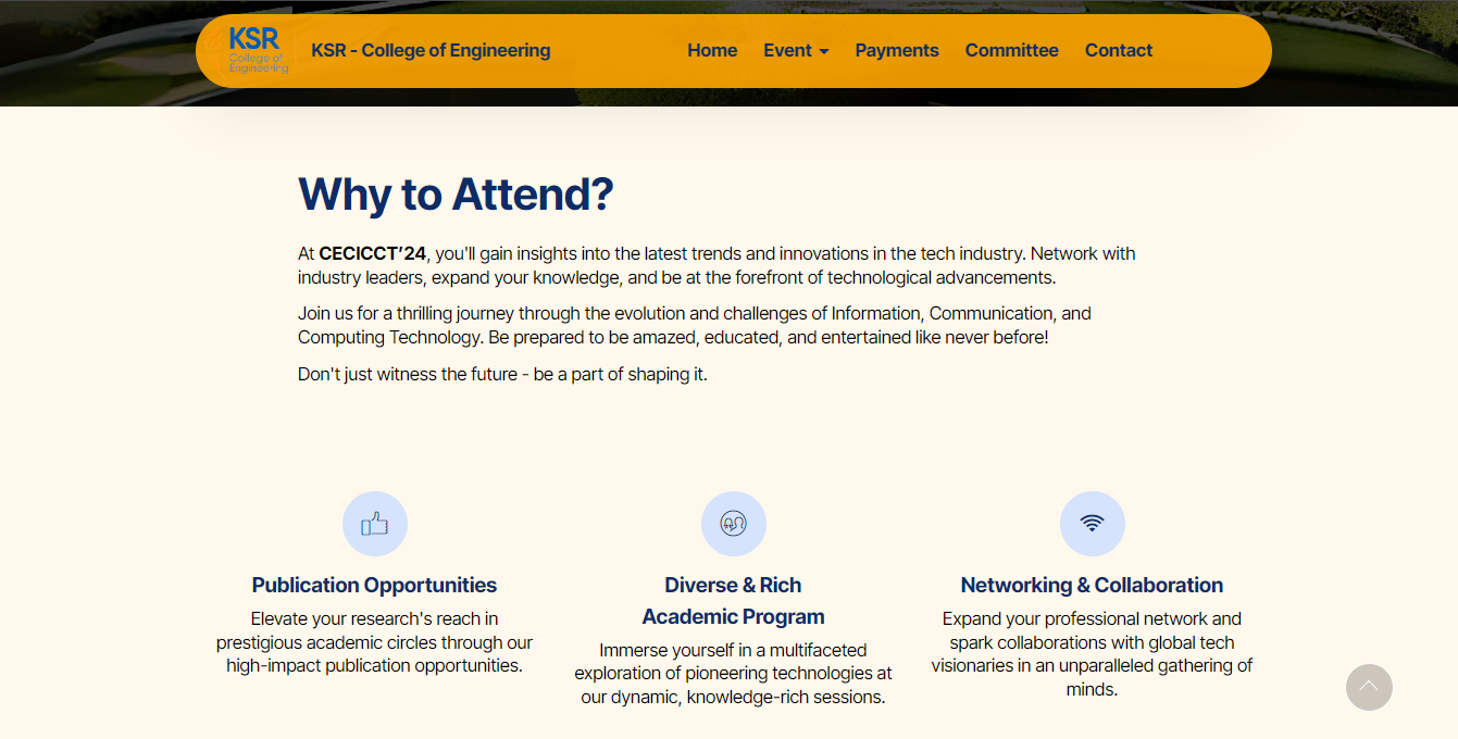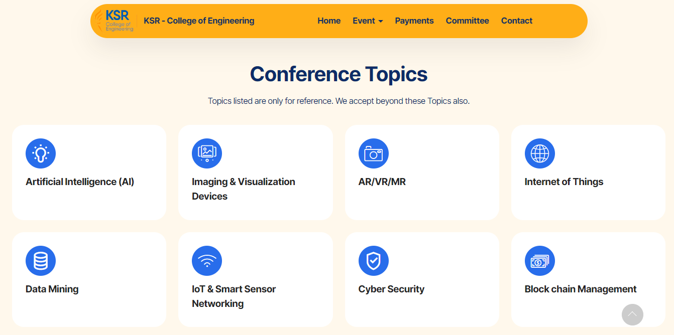 The CECICCT-24 website successfully met the client’s expectations by providing a professional online presence that effectively promoted the event and facilitated seamless participant engagement. It served as a testament to my ability to blend technical expertise with creative design, ultimately contributing to the success of KSR College of Engineering’s flagship event.