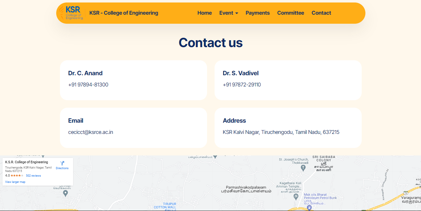 I utilized HTML, CSS, and JavaScript to craft a visually appealing and functional website that aligns with the branding guidelines of KSR College of Engineering. The design emphasized clarity, ease of navigation, and a modern aesthetic to appeal to both students and industry professionals.